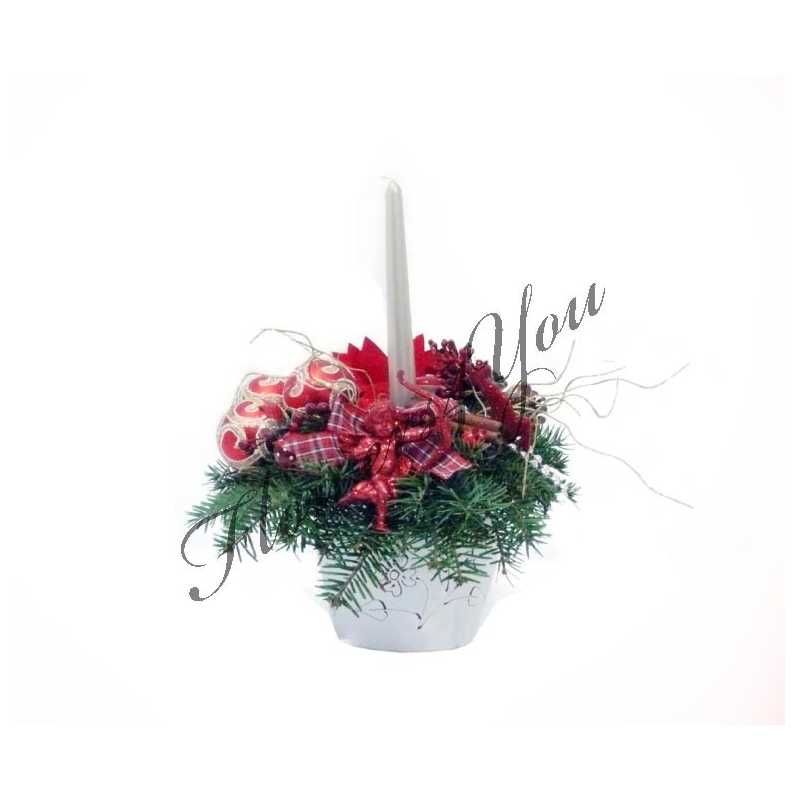 Ofera celor dragi un cadou deosebit pentru acest Craciun, un aranjament cu lumanare, realizat din brad natural si decorat cu elementele esentiale ale unei sarbatori ca din povesti. Craciun fericit!