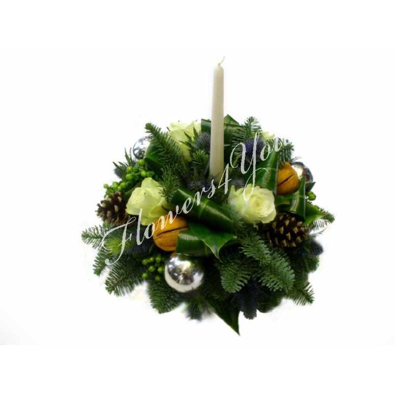 Ofera cel mai frumos cadou anul acesta, cu un aranjament de Craciun deosebit, inspirat de bogatia sarbatorilor de iarna. Decorat cu brad natural, trandafiri si frunze, globulete si conuri, acest aranjament este elementul care completeaza perfect masa de Craciun.