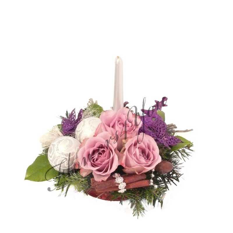Aranjament craciun lumanare trandafiri globuri scortisoara