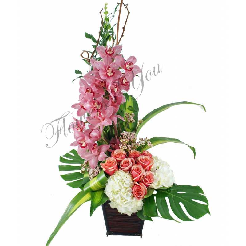 Aranjament trandafiri orhidee