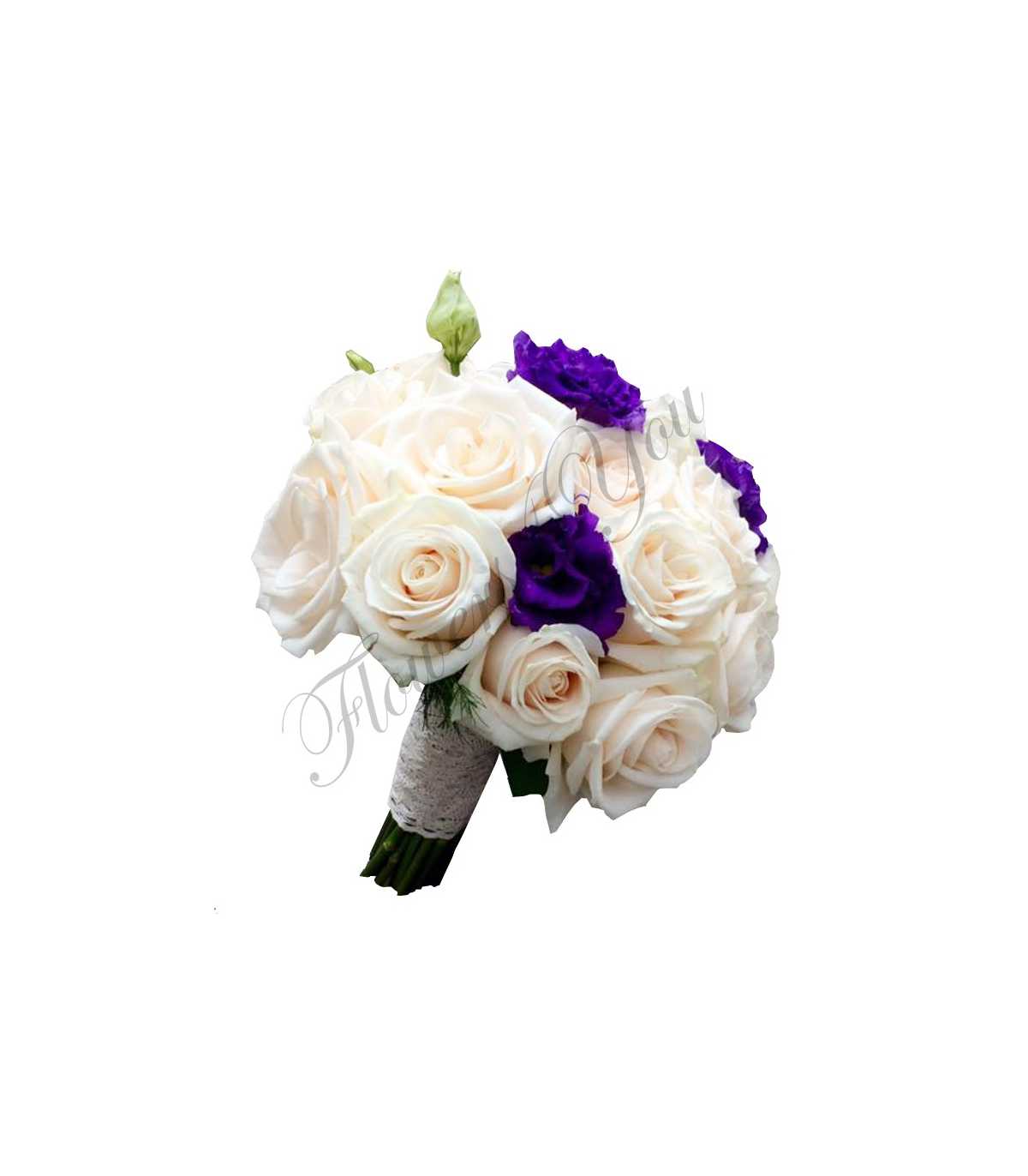 Buchete mireasa trandafiri crem lisiantus mov